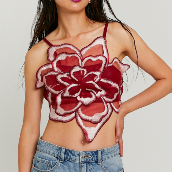 Top de renda festa sexy feminino com flor bordada estilo férias Halter malha Top Fashion